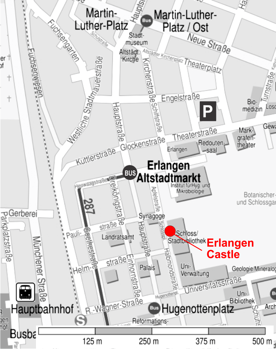 The map of downtown Erlangen provided below might help you. The location is in good